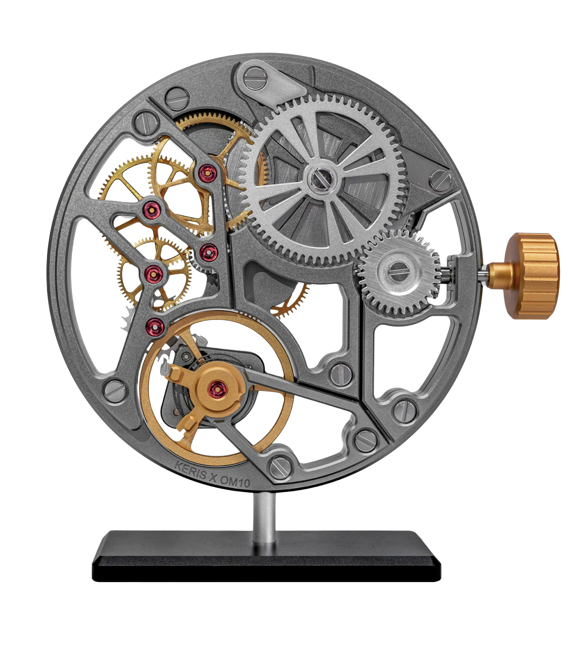 Its rhodium-anthracite surface brings a deeper, more architectural presence, while the dark-gold wheels accentuate the rhythm and precision of motion with subtle warmth.